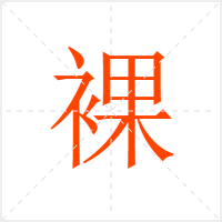 luǒ露出,没有遮盖:~露|~体。 【裸露】没有东西遮盖:~在地面上的煤层。 【裸麦】(luǒmài)见〖青稞〗。 【裸体】光着身子。 【裸线】没有绝缘材料包裹的金属导线,例如电车的架空线。 【裸子植物】种子植物的一大类,胚珠和种子都是裸露的,胚珠外面没有子房,种子外面没有果皮包着,松、杉、银杏等都属于裸子植物(区别于‘被子植物’)。