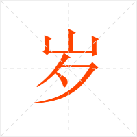 suì①<名>岁星;木星。《国语·周语》:“~之所在,则我有周之分野也。”②<名>年。《捕蛇者说》:“积于今六十~矣。” 【又】〈名作状〉每年。《送东阳马生序》:“父母~有裘葛之遗”③<名>年龄。《促织》:“成有子九~。”④<名>时间;光阴。《论语·阳货》:“日月逝矣,~不我与。”⑤<名>年成;收成。《寡人之于国也》:“王无罪~,斯天下之民至焉。” 【岁除】年终;一年的最后的一天。
