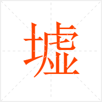 xū①<名>大土山。柳宗元《观八骏图说》:“古之书记周穆王驰八骏升昆仑之~者。”②<名>废墟。贾思勰《齐民要术·种麻》:“麻欲得良田,不用故~。” 【又】使成废墟。《荀子·解蔽》:“丧九牧之地,而~宗庙之国。”③<名>集市(后起意义)。如“趁墟”、“墟市”。范成大《豫章南浦亭泊舟》诗:“趁~犹市井,收潦再耕桑。” 【墟落】村落。王维《渭川田家》诗:“斜阳照~,穷巷牛羊归。”