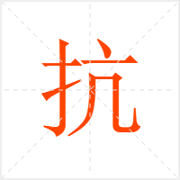 kàng①<动>抗拒;抵御。《赤壁之战》:“然刘豫州新败之后,安能~此难乎?”②<动>匹敌;相当。《游黄山记》:“万峰无不下伏,独莲花与~耳。”③<形>刚正;刚直。《<指南录>后序》:“初至北营,~辞慷慨,上下颇惊动。”④<形>高;高亢。《马伶传》:“迨半奏,引商刻羽。~坠疾徐,并称善也。”⑤<形>强;超过。《过秦论:“谪戍之众,非。于九国之师也” 【抗礼】行对等的礼。 【抗论】1.直言不阿屈。⒉争论而不相上下。 【抗言】⒈高声说话。⒉对面交谈。 【抗颜】脸色庄严不屈。