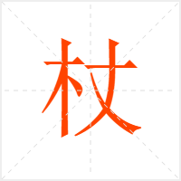 zhàng①<名>手杖;拐杖。《茅屋为秋风所破歌》:“归来倚~自叹息。”②<名>挑物的工具。《荷蓧丈人》:“以~荷蓧。”③<名>棍棒。《订鬼》:“病者困剧,身体痛,则谓鬼持箠~殴击之。”④<动>用棍棒打。《书博鸡者事》:“不呼则~其背。”⑤<动>拄着。《中山狼传》:“遥望老子~藜而来。” 【杖策】⒈执鞭,指驱马而行。⒉扶杖。