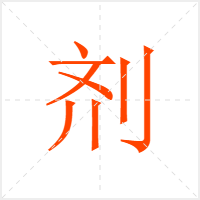 jì①<动>调节;调剂。《治平篇》:“水旱疾疫,即天地调~之法。”②<名>药剂;根据药方由多种药物配成的药。《新唐书·吴凑传》:“诏侍医敦进汤~。”③<名>剂量;定量。《三国志·魏书·华佗传》:“心解分~,不复称量。”④<量>付。用于汤药。《世说新语·术解》:“合一~汤与之。” 【剂刀】剪刀。 【剂信】刻券以明信。指信用。