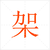 jià①<名>棚架;支撑东西的架子。贾思勰《齐民要术·种桃柰》:“葡萄蔓延,性缘,不能自举,作~以承之。”②<名>放东西的架子。《项脊轩志》:“借书满~。”③<动>架设;构架。《阿房宫赋》:“~梁之椽,多于机上之工女。”④<量>用于有支架的物体。蒲松龄《山市》:“楼五~,窗扉皆洞开。”