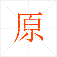 yuán①<名>水源。 【引】根源;本源。《货殖列传序》:“此四者,民所认食之~也。”后来写作“源”。②<动>推究;推求原因;探究。《伶官传序》:“~庄宗之所以得天下……可以知之矣。”③<名>平原;原野,指战场。《殽之战》:“武夫力而拘诸~。”④<副>再。《灌园叟晚逢仙女》:“你可要这花~上枝头么?”⑤<动>赦免。《三国志·张鲁传》:“犯法者,三~然后乃行刑。” 【原本】书的初刻本。事物之所由起。追溯事物之由来。 【原人】谨慎老实的人。