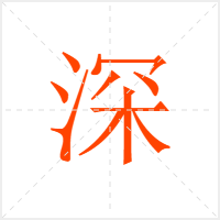 shēn①<形>水深,与“浅”相对。《滕王阁序》:“地势极而南溟~。”②<形>深远,从上到下或从外到里距离大。《口技》:“遥闻~巷中犬吠。”《游园》:“人立小庭~院。”③<形>时间久。《琵琶行》:“夜~忽梦少年,梦啼妆泪红阑干。”④<形>程度深。《扁鹊见蔡桓公》:“君之病在肠胃,不治将益~。”⑤<形>苛刻;严厉;刻毒。《荆轲刺秦王》:“秦之遇将军可谓~矣。”⑥<形>深刻;深入。《过秦论》:“~谋远虑,行军用兵之道。”《游褒禅山记》:“此所以学者不可不~思而慎取之也。”⑦<形>茂盛。《春望》:“国破山河在,城春草木~。”⑧<副>很;非常。《赤壁之战》:“子布、元表诸人各顾妻子,挟持私虑,~失孤望。”