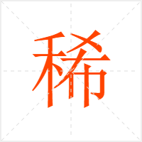 xī①<形>稀疏;疏。《归田园居》:“种豆南山下,草盛豆苗~。”②<形>稀少;少。《孔雀东南飞》:“贱妾留空房,相见常日~。”③<形>稀薄;不稠。白居易《苦雨》:“叶湿蚕应病,泥~燕亦愁。”④<副>表示程度深,用在“烂”、“松”等形容词前。《葫芦僧判断葫芦案》:“那薛公子便喝令下人动手,将冯公子打了个~烂,抬回去三日竟死了。” 【稀年】七十岁的代称。